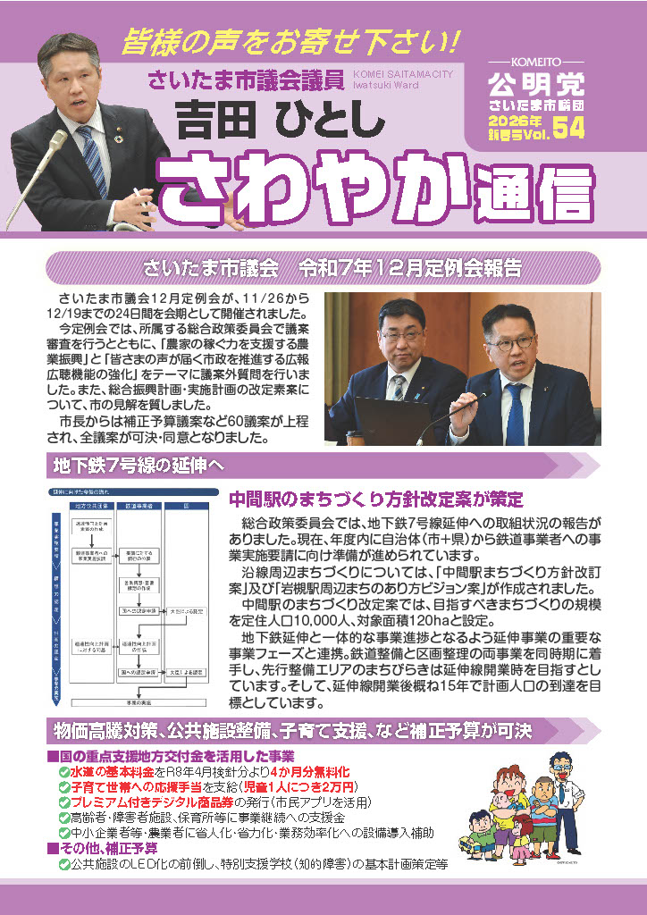 議会報告「さわやか通信54号」